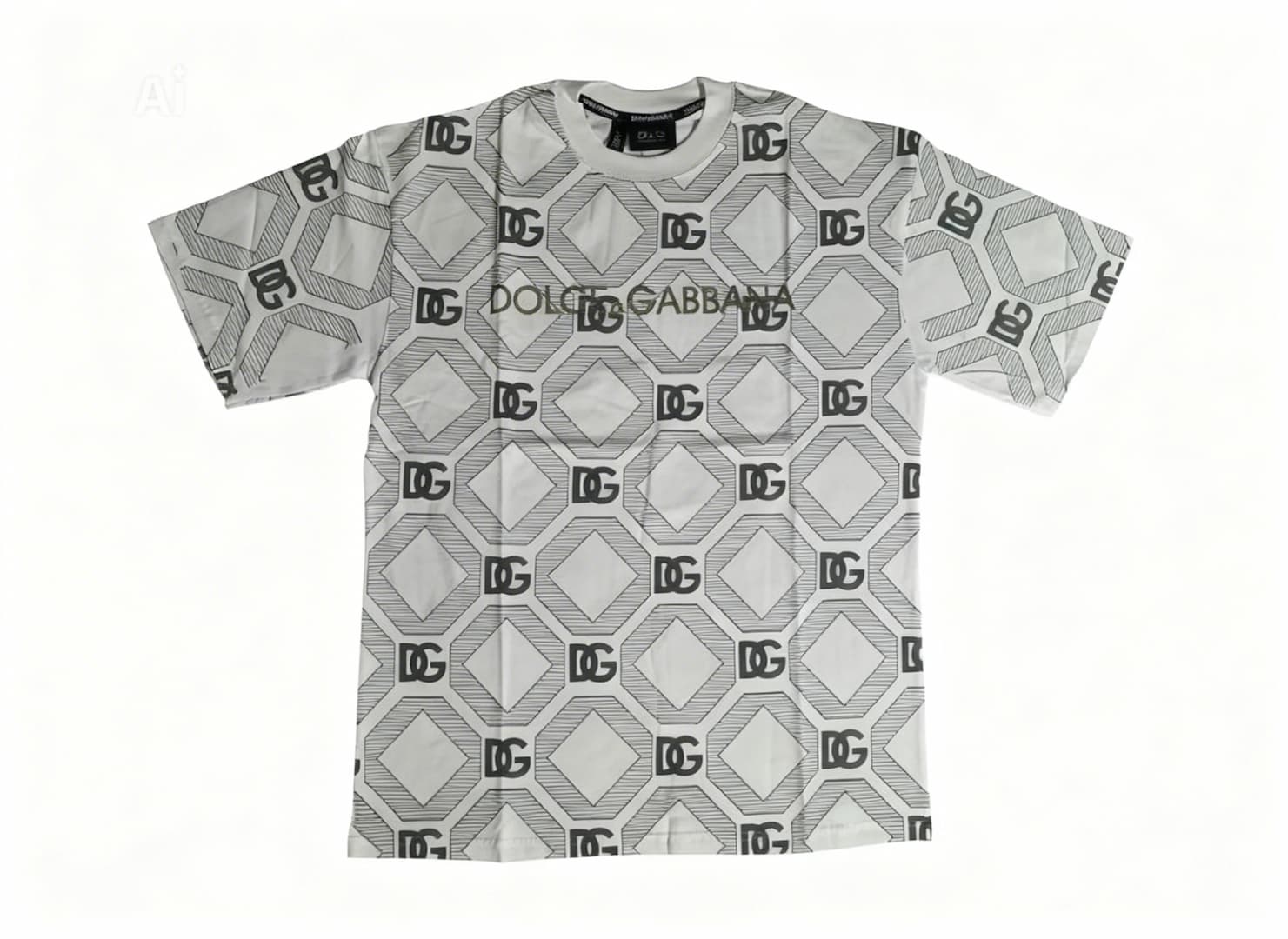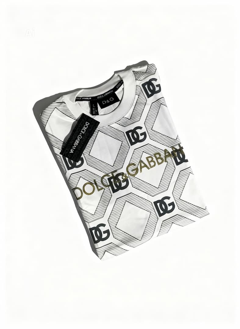 + Free ShippingCamisa doce gabana blanca con negra , compuesta por bordes geométricos , algodón pimax